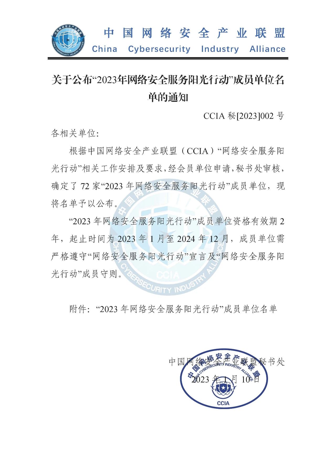 “网络安全服务阳光行动”由中央网信办网络安全协调局指导,中国网络安全产业联盟(CCIA)组织开展,旨在规范网络安全服务行业行为,提高网络安全服务供给质量,推动《信息安全技术 网络安全服务成本度量指南》等相关标准落地,促进我国网络安全服务产业健康有序发展。