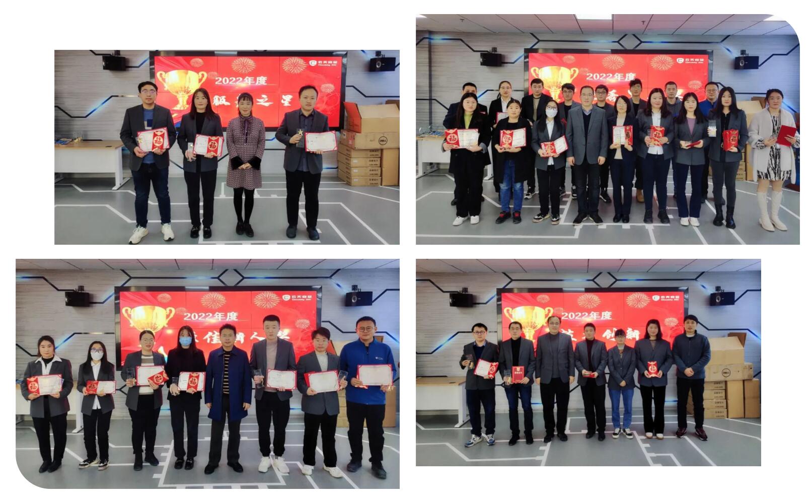 年度各优秀奖项是经各个部门推选、公司综合评审最终确定的。表彰大会上,颁发了2022年度个人奖和团队奖,分别为优秀员工奖19项、最佳新人奖7项、服务之星奖3项、技术创新奖3项、优秀管理奖5项、优秀团队奖3项,他们在各自的工作岗位上认真负责、态度积极,综合表现优秀,把自己的工作职责当成使命,在自己的岗位上努力付出以结果为导向为公司发展贡献力量。