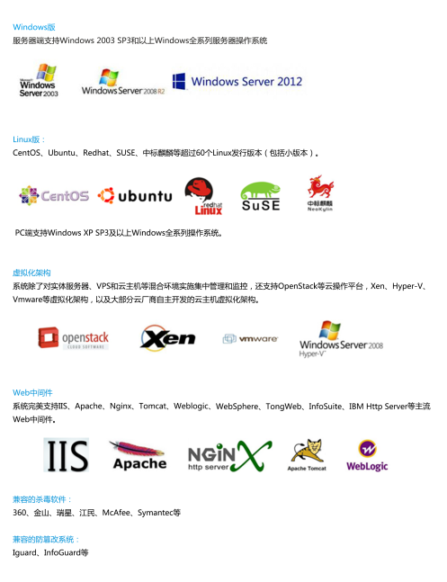 ·支撑系统兼容性,如Windows系列,Ubuntu系列、Centos系列、Redhat系列、Suse系列、Aisanux系系列